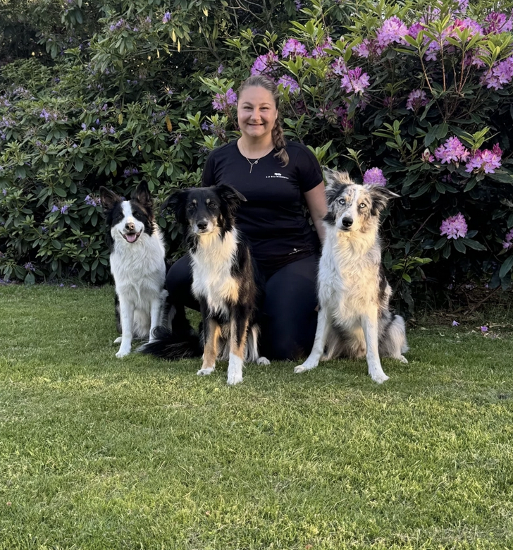 Emma har fyra hundar, blandisen Molly 9 år, två dvärgpudlar Bubbel 5 år och unghunden Poppa. Yngst i flocken är Pink som är en bordercollie.