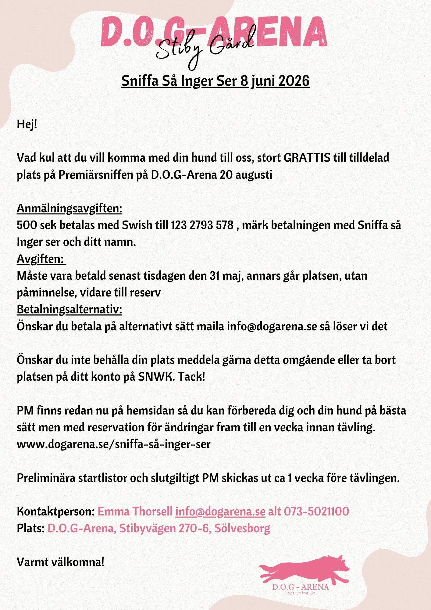 du är inbjuden på noseworktävling hos oss på d.o.g-arena