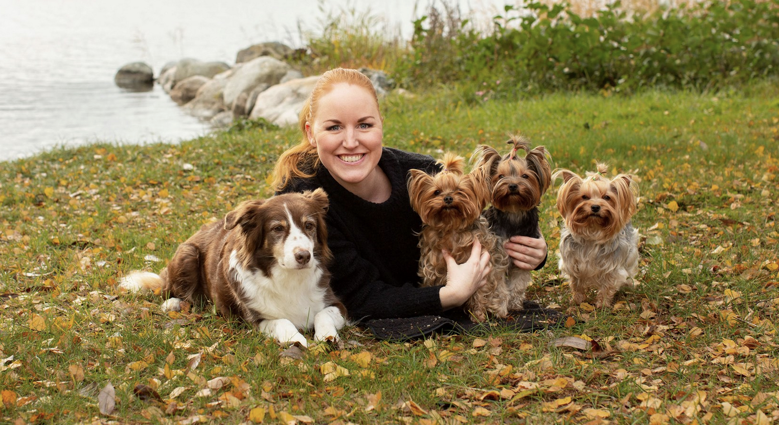 Emma har fyra hundar, blandisen Molly 9 år, två dvärgpudlar Bubbel 5 år och unghunden Poppa. Yngst i flocken är Pink som är en bordercollie.